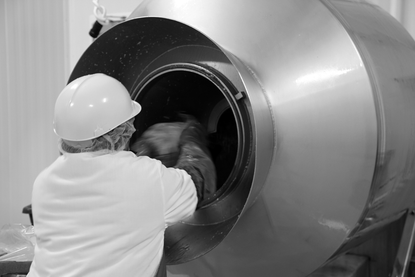 Large vacuum tumblers permeate the seasoning into the protein with equal and consistent coverage. This process saves restaurants money by eliminating the time, labor, and marinade required at the kitchen level.
